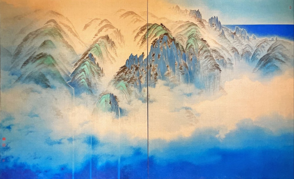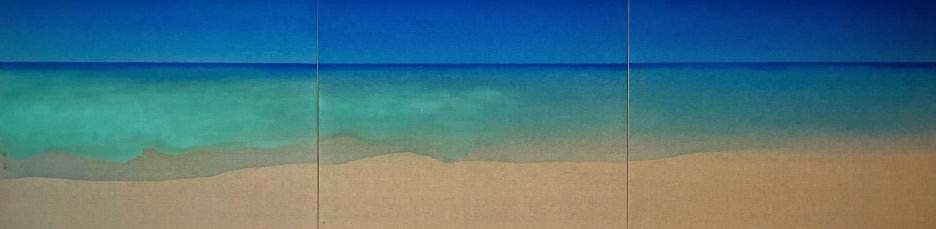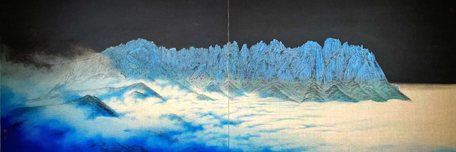 푸른 안료가 겹겹이 물든 작가의 작품을 감상할 수 있는