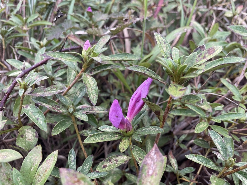 수척해진 잎사귀 사이로 내민 얼굴은 가을철쭉이다.