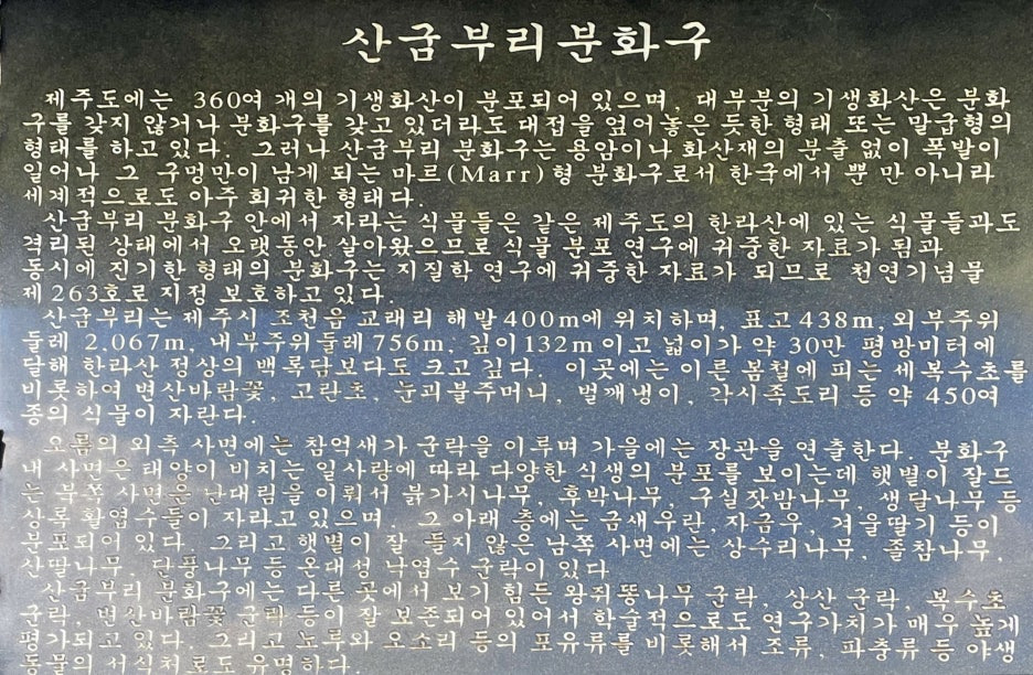 천연기념물로 지정 보호되고 있는 산굼부리에 대하여 국가유산청에서는 다음과 같이 설명하고 있다.