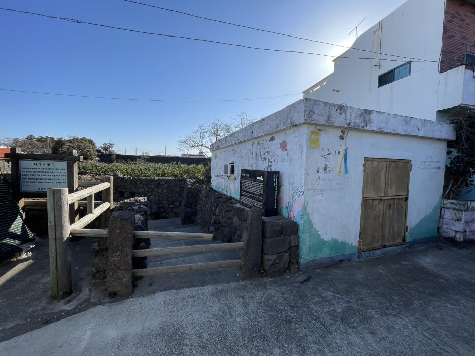 두레물과 이재수 생가터 표지석. 이재수 생가터는 우물 바로 앞집이다. 소유주의 허락없이 출입이 불가해서 사진은 찍지 않았다.