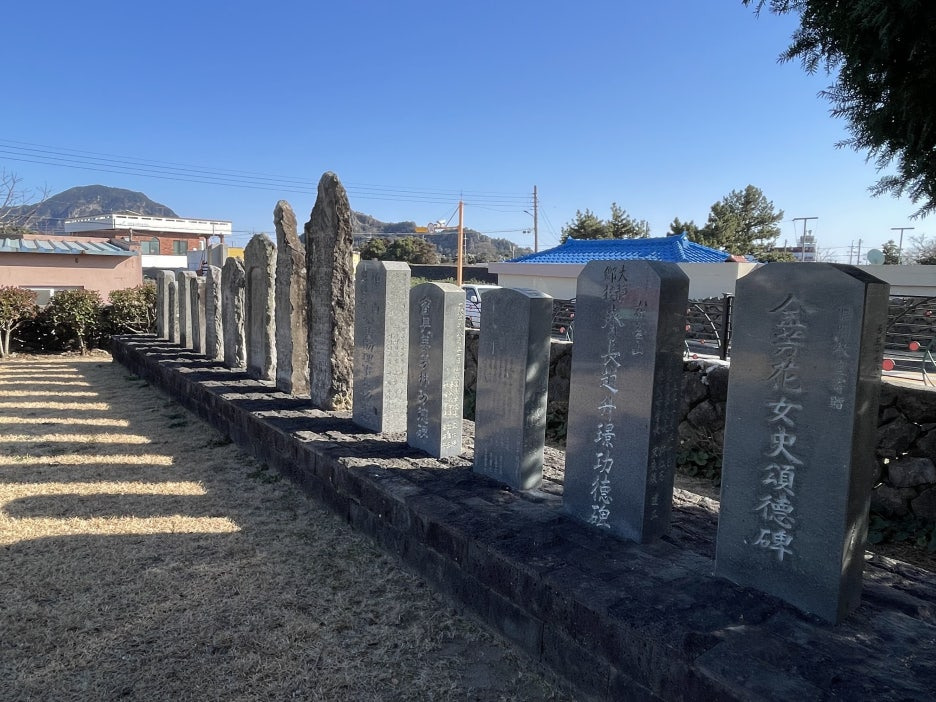 재일동포 등의 선행을 적은 20여 기의 비석들