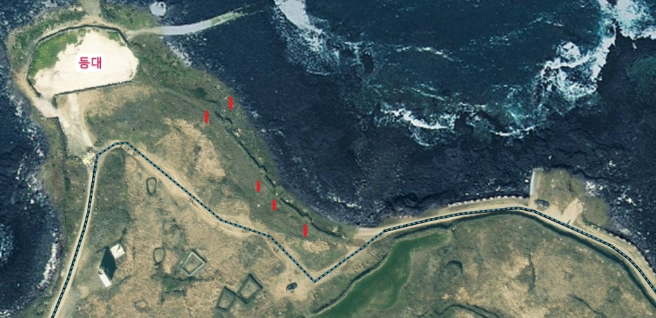 환해장성 안쪽의 돌유적. 저멀리 등대 옆에도 하나 보인다.