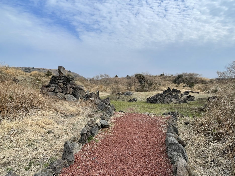 다랑쉬오름 남쪽 ‘잃어버린 마을’ 표지석 근처에서 이곳 유적지까지 이어졌던 그 고통스러웠던 옛길은 이제 찾아보기가 어렵다. 유적지 근처에는 주차시설까지 잘 정비되어 있다.